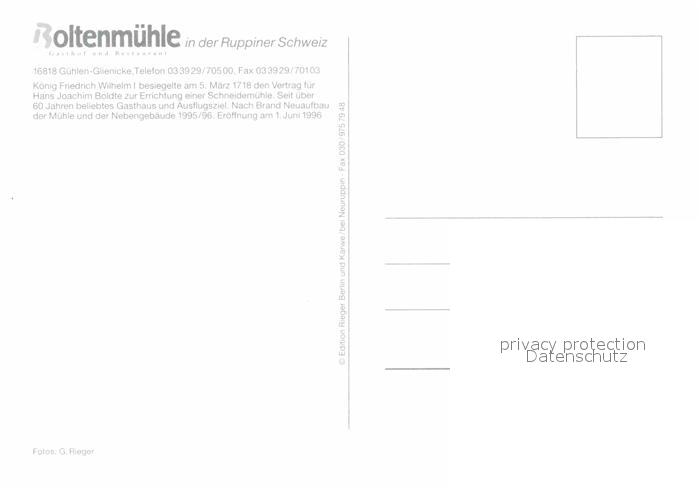 72772181 Guehlen Glienicke Boltenmuehle postalisch nicht gelaufen Erhaltung siehe scans [AndreD76] KatCode: 11110012068320