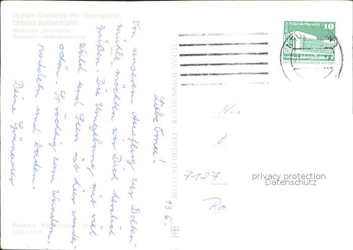 71963359 alte Postkarte Guehlen Glienicke Gaststaette Boltenmuehle postalisch gelaufen Erhaltung siehe scans KatCode: 11110012068320