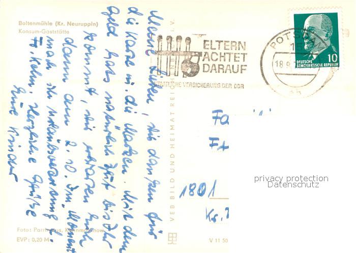 73734593 alte Postkarte Guehlen Glienicke Konsum Gaststaette Boltenmuehle postalisch gelaufen Erhaltung siehe scans [FriedD77] KatCode: 11110012068320