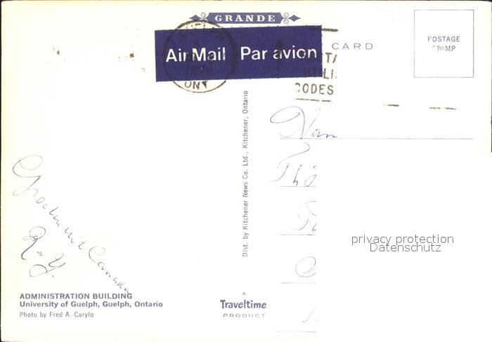 old postcard Guelph Administration Building University postalisch gelaufen Erhaltung siehe scans