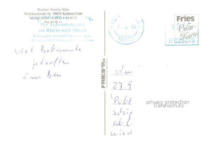 73224562 Guels Koblenz Mosel Hotel Haehn postalisch nicht gelaufen Erhaltung siehe scans [KathaD81] KatCode: 11110007111000