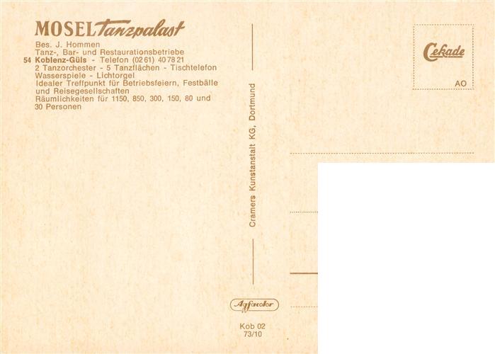 73897141 Guels Koblenz Mosel Tanzpalast Grosser Tanzsaal Feinschmecker Eldorado Sancho Panza Tanzbar postalisch nicht gelaufen Erhaltung siehe scans [WerneD78] KatCode: 11110007111000