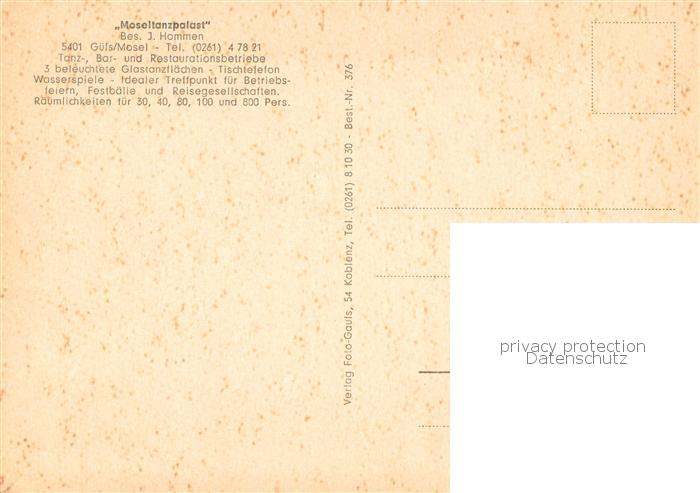 73763343 Guels Koblenz Moseltanzpalast Bar Veranstaltungsraeume postalisch nicht gelaufen Erhaltung siehe scans [WerneD78] KatCode: 11110007111000