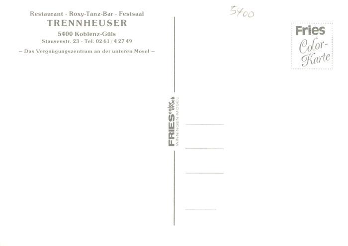 73890814 Guels Koblenz Restaurant Roxy Tanz Bar Festsaal Trennheuser postalisch nicht gelaufen Erhaltung siehe scans [WerneD78] KatCode: 11110007111000