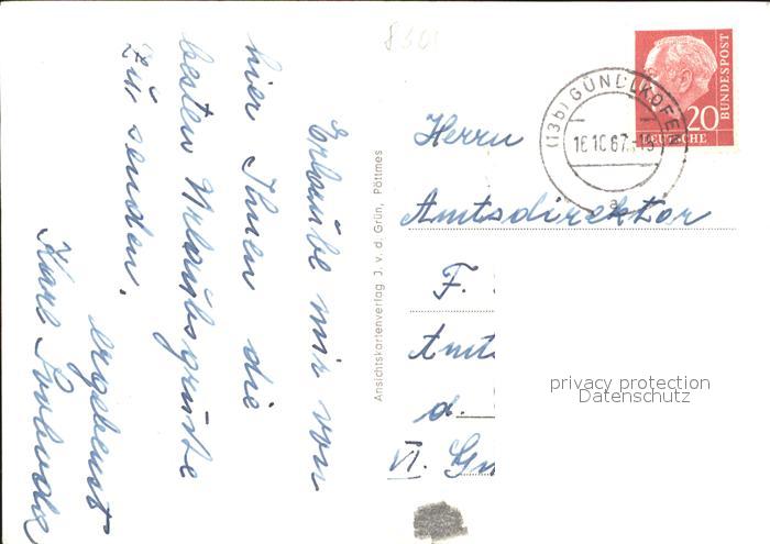 31850093 alte Postkarte Guendlkofen Gesamtansicht Cafe Bergfrieden Schule postalisch gelaufen Erhaltung siehe scans KatCode: 11110009274194