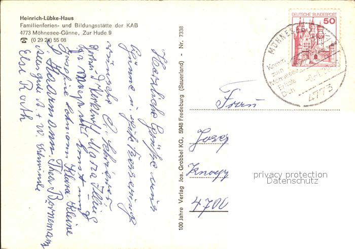 72032021 alte Postkarte Guenne Heinrich-Luebke-Haus postalisch gelaufen Erhaltung siehe scans KatCode: 11110005974032