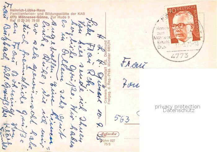 72819741 alte Postkarte Guenne Heinrich-Luebke-Haus postalisch gelaufen Erhaltung siehe scans [NatalD47] KatCode: 11110005974032
