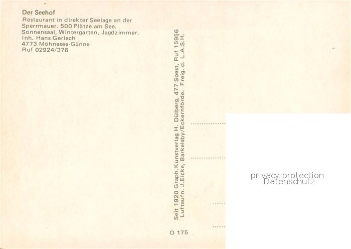 73723680 Guenne Moehnesee Der Seehof Restaurant an der Sperrmauer Fliegeraufnahme postalisch nicht gelaufen Erhaltung siehe scans [WerneD78] KatCode: 11110005974032