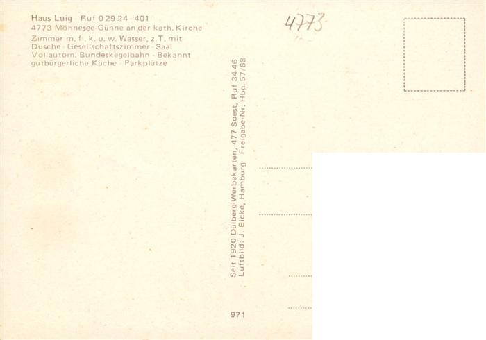 73891602 Guenne Moehnesee Haus Luig Fliegeraufnahme postalisch nicht gelaufen Erhaltung siehe scans [FriedD77] Frie Katcode 11110005974032