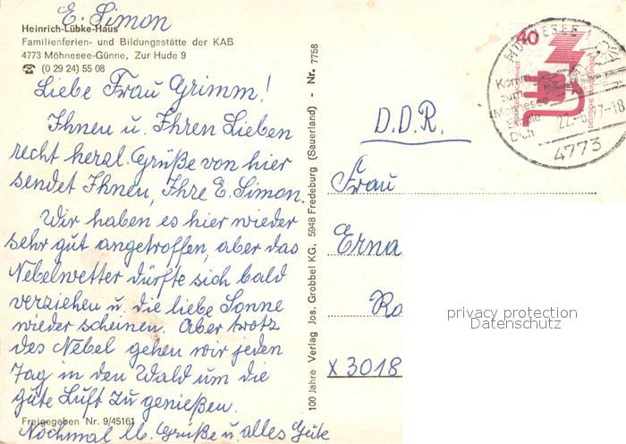 73615973 alte Postkarte Guenne Moehnesee Heinrich Luebke Haus Fliegeraufnahme postalisch gelaufen Erhaltung siehe scans [WerneD78] KatCode: 11110005974032
