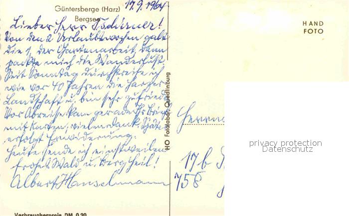 72634522 alte Postkarte Guentersberge Bergsee postalisch gelaufen Erhaltung siehe scans [KathaD79] KatCode: 11110015085130