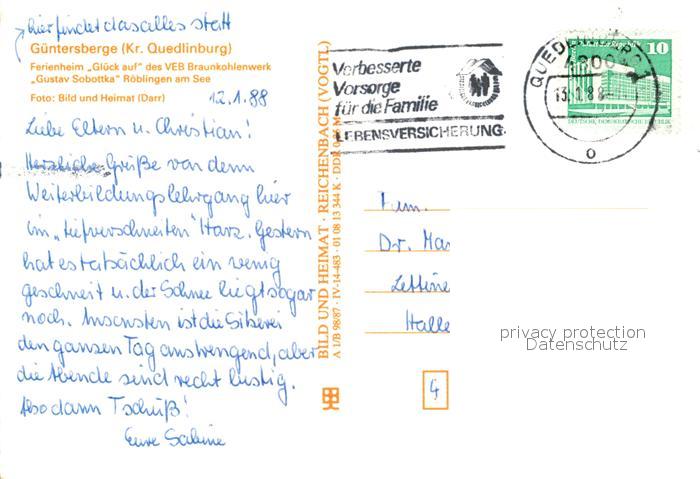 73301747 alte Postkarte Guentersberge Ferienheim Glueck auf postalisch gelaufen Erhaltung siehe scans [PaolaD17] KatCode: 11110015085130