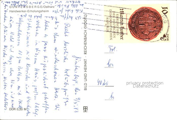 72027239 alte Postkarte Guentersberge Handwerker Erholungsheim postalisch gelaufen Erhaltung siehe scans KatCode: 11110015085130