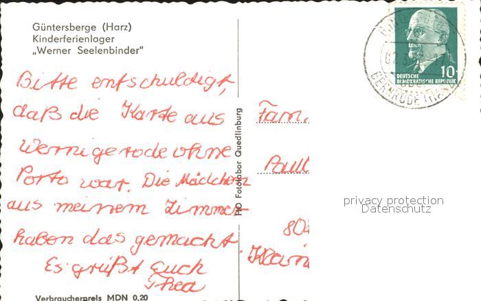 71977251 alte Postkarte Guentersberge Kinderferienlager Werner Seelenbinder postalisch gelaufen Erhaltung siehe scans KatCode: 11110015085130