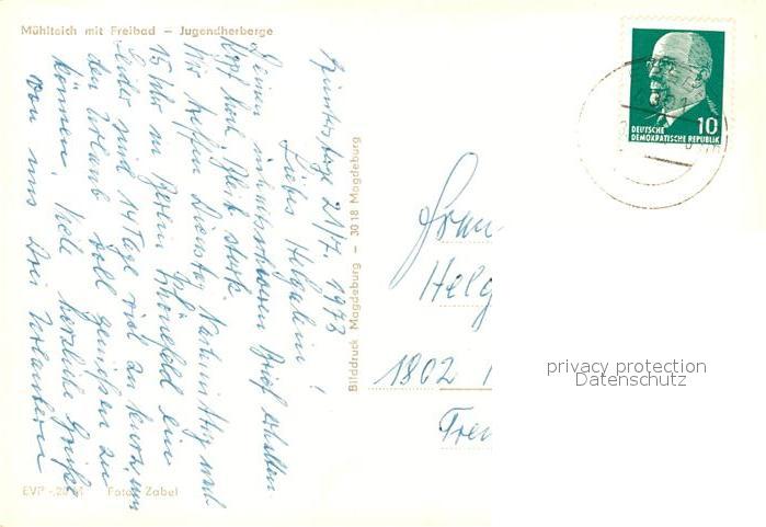 73099309 alte Postkarte Guentersberge Muehlteich Freibad Jugendherberge postalisch gelaufen Erhaltung siehe scans [KathaD81] KatCode: 11110015085130