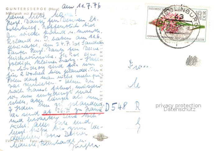 72940674 alte Postkarte Guentersberge Muehlteich mit Freibad Bootfahren postalisch gelaufen Erhaltung siehe scans [FriedD77] KatCode: 11110015085130
