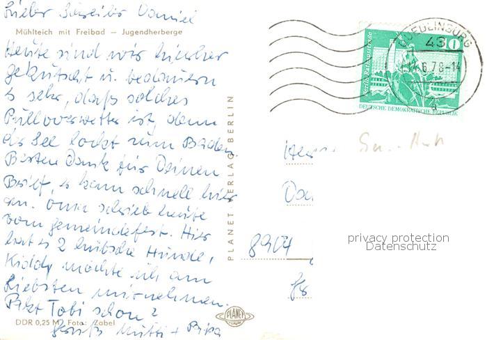 73832738 alte Postkarte Guentersberge Muehlteich mit Freibad Jugendherberge postalisch gelaufen Erhaltung siehe scans [FriedD77] KatCode: 11110015085130