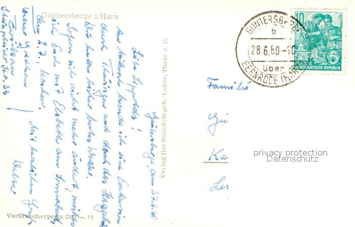 72962090 alte Postkarte Guentersberge postalisch gelaufen Erhaltung siehe scans [LiesaD40] KatCode: 11110015085130