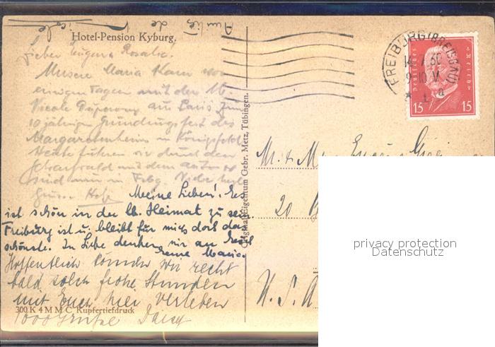 72306049 alte Postkarte Guenterstal Freiburg Fliegeraufnahme Hotel Pension Kyburg postalisch gelaufen Erhaltung siehe scans KatCode: 11110008311000