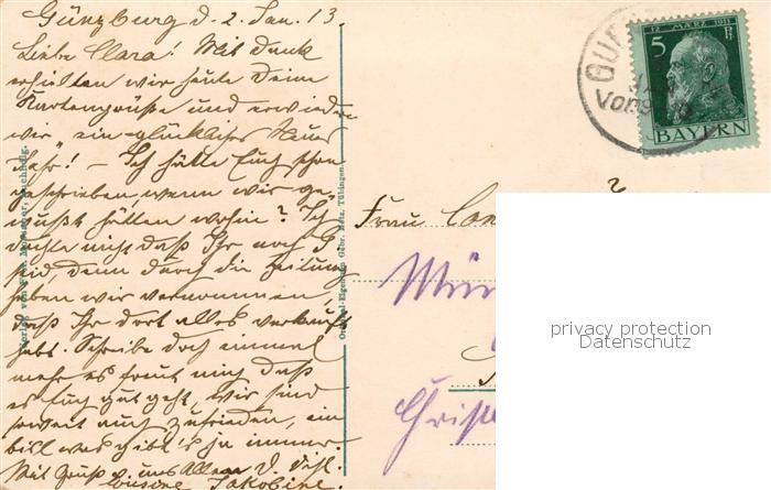 73794070 alte Postkarte Guenzburg Teilansicht postalisch gelaufen Erhaltung siehe scans [LiesaD40] KatCode: 11110009774135