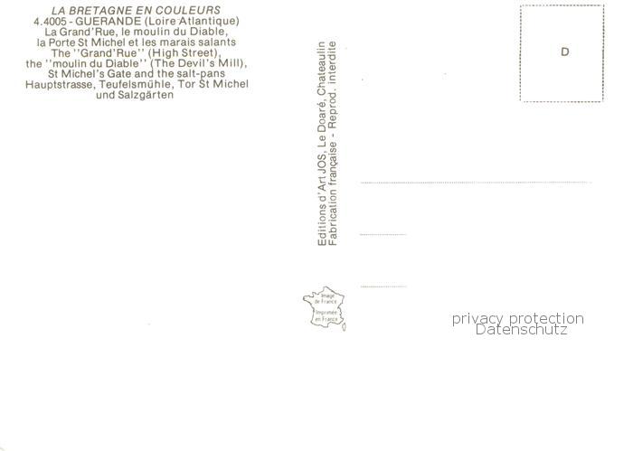 13791441 Guerande 44 La Grand Rue le moulin du Diable la Porte St Michel et les marais salants postalisch nicht gelaufen Erhaltung siehe scans [WerneD78] Wern Katcode 11170044344069