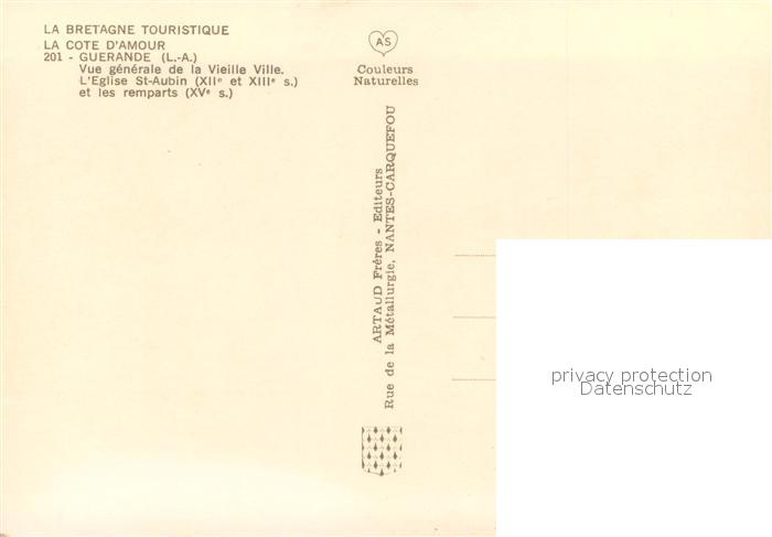 13617428 Guerande Vue generale aerienne de la Vieile Ville Eglise St Aubin et les remparts postalisch nicht gelaufen Erhaltung siehe scans [WerneD78] Wern Katcode 11170044344069