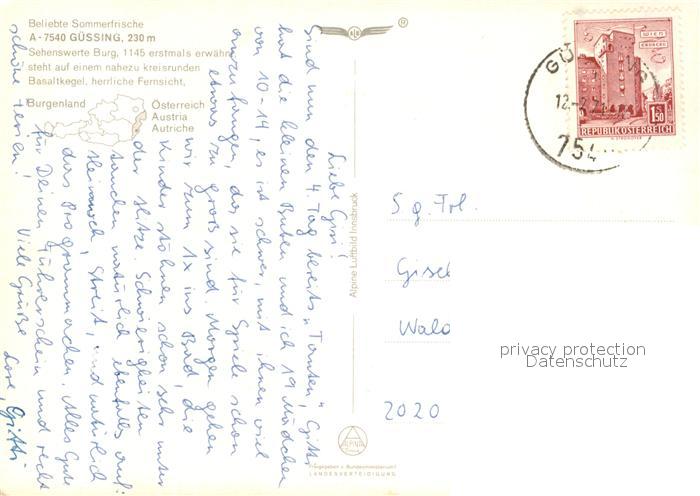 73243161 alte Postkarte Guessing mit Burg Fliegeraufnahme postalisch gelaufen Erhaltung siehe scans [FriedD77] KatCode: 11390113010405