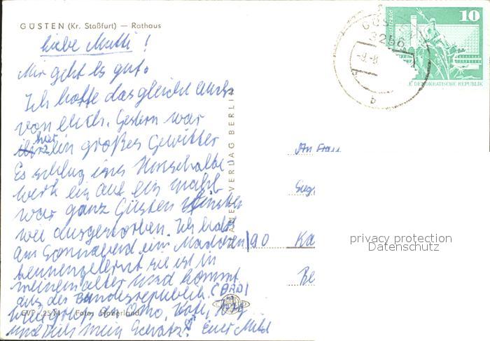 71989548 alte Postkarte Guesten Anhalt Rathaus Kreis Stassfurt postalisch gelaufen Erhaltung siehe scans KatCode: 11110015089165