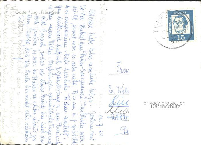 72117691 alte Postkarte Guester am Pruess-See postalisch gelaufen Erhaltung siehe scans KatCode: 11110001053048