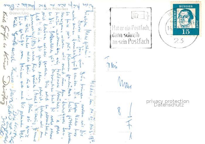 72967606 alte Postkarte Guester Camping-Gelaende Am Pruess-See postalisch gelaufen Erhaltung siehe scans [NatalD47] KatCode: 11110001053048