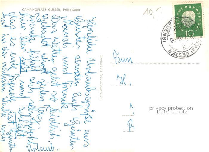 73045636 alte Postkarte Guester Campingplatz Pruess Seen postalisch gelaufen Erhaltung siehe scans [KathaD81] KatCode: 11110001053048