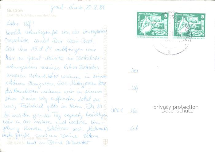 72418399 alte Postkarte Guestrow Mecklenburg Vorpommern Ernst Barlach Haus am Herdberg postalisch gelaufen Erhaltung siehe scans KatCode: 11110013053031