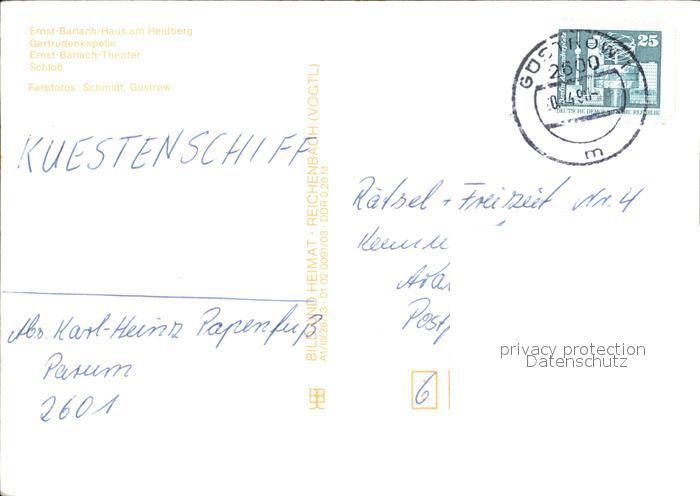 72416145 alte Postkarte Guestrow Mecklenburg Vorpommern Ernst Barlach Theater Haus Gertrudenkapelle Schloss postalisch gelaufen Erhaltung siehe scans KatCode: 11110013053031