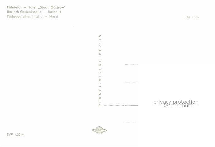72633820 Guestrow Mecklenburg Vorpommern Faehrteich Hotel Stadt Guestrow Barlach Gedenkstaette Rathaus Paedagogisches Institut Markt postalisch nicht gelaufen Erhaltung siehe scans [FriedD77] KatCode: 11110013053031