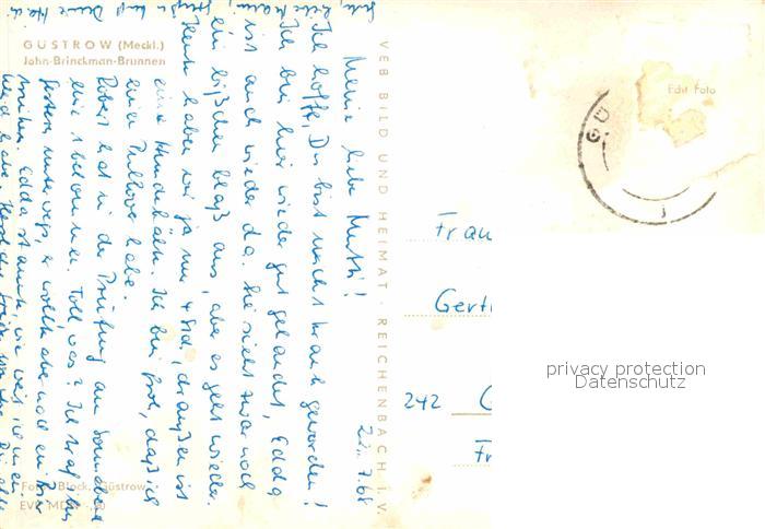 72812746 alte Postkarte Guestrow Mecklenburg Vorpommern Jahn Brinckman Brunnen Denkmal postalisch gelaufen Erhaltung siehe scans [FriedD77] KatCode: 11110013053031