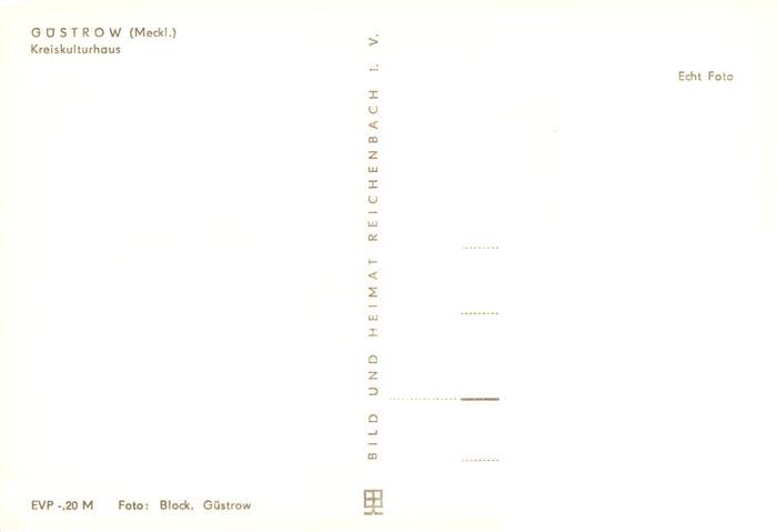 73888479 Guestrow Mecklenburg Vorpommern Kreiskulturhaus postalisch nicht gelaufen Erhaltung siehe scans [FriedD77] KatCode: 11110013053031