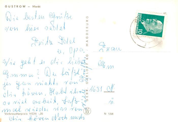 73872162 alte Postkarte Guestrow Mecklenburg Vorpommern Markt Zentrum Innenstadt postalisch gelaufen Erhaltung siehe scans [FriedD77] KatCode: 11110013053031