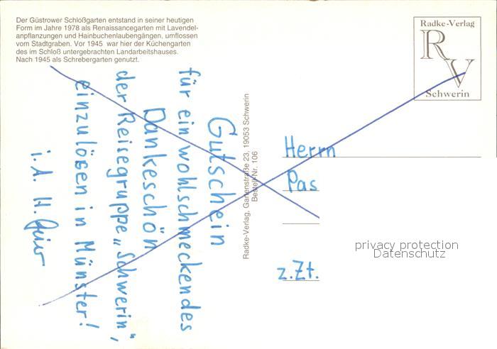 72428132 Guestrow Mecklenburg Vorpommern Schlossgarten Renaissancegarten Stadtgraben Schloss Fliegeraufnahme postalisch nicht gelaufen Erhaltung siehe scans KatCode: 11110013053031