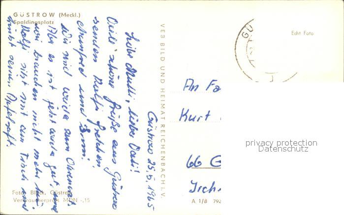 72010128 alte Postkarte Guestrow Mecklenburg Vorpommern Spaldingsplatz postalisch gelaufen Erhaltung siehe scans KatCode: 11110013053031