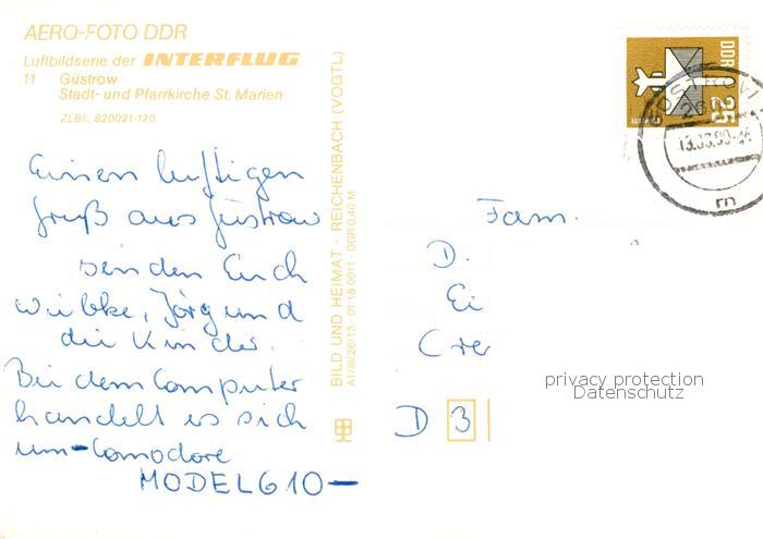 73836550 alte Postkarte Guestrow Mecklenburg Vorpommern Stadt und Pfarrkirche St Marien Fliegeraufnahme postalisch gelaufen Erhaltung siehe scans [WerneD78] KatCode: 11110013053031