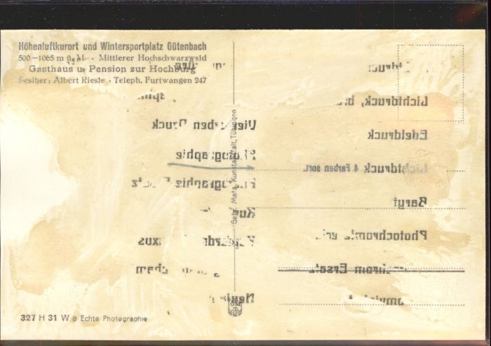 40817924 Guetenbach Furtwangen Gasthaus Pension zur Hochburg postalisch nicht gelaufen Alte Ansichtskarte Postkarte Katcode 11110008326017