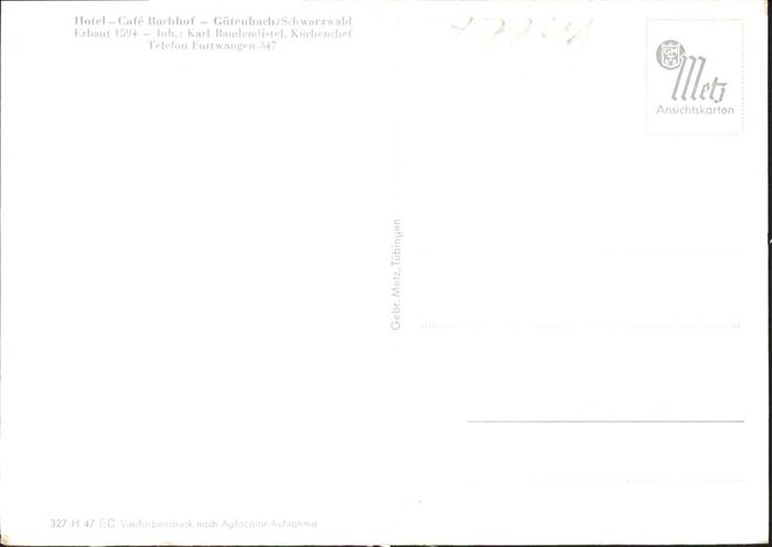 41042108 Guetenbach Schwarzwald Furtwangen BW Cafe Bachhof postalisch nicht gelaufen Alte Ansichtskarte Postkarte Ulri Katcode 11110008326020