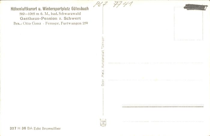 41040852 Guetenbach Schwarzwald Furtwangen BW Gasthaus Pension Schwert postalisch nicht gelaufen Alte Ansichtskarte Postkarte Elvi Katcode 11110008326020