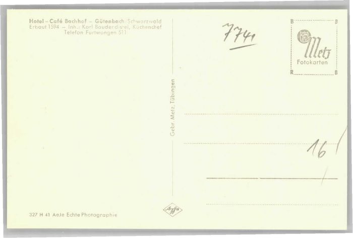 40731527 Guetenbach Schwarzwald Furtwangen BW Hotel Bachhof postalisch nicht gelaufen Alte Ansichtskarte Postkarte Katcode 11110008326020