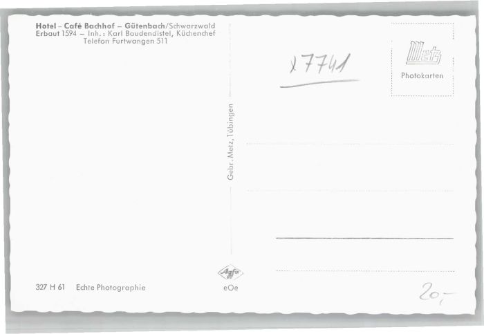 40731557 Guetenbach Schwarzwald Furtwangen BW Hotel Cafe Bachhof postalisch nicht gelaufen Alte Ansichtskarte Postkarte Katcode 11110008326020