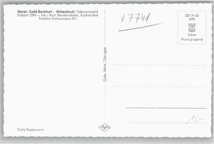 40731545 Guetenbach Schwarzwald Furtwangen BW Hotel Cafe Bachhof postalisch nicht gelaufen Alte Ansichtskarte Postkarte Katcode 11110008326020