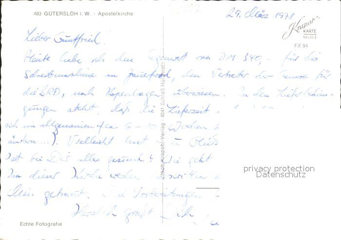 72331873 Guetersloh Apostelkirche postalisch nicht gelaufen Erhaltung siehe scans KatCode: 11110005754008
