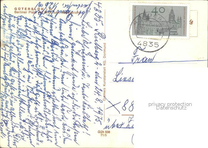 alte Postkarte Guetersloh Berliner Platz Amtsgericht postalisch gelaufen Erhaltung siehe scans