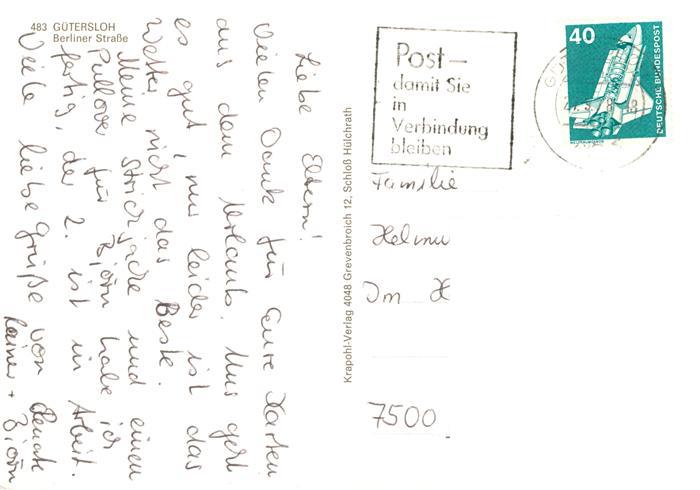 73934317 alte Postkarte Guetersloh Berliner Strasse postalisch gelaufen Erhaltung siehe scans [WerneD78] KatCode: 11110005754008