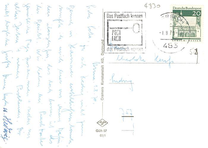 73876675 alte Postkarte Guetersloh Blessenstaette Meiers Muehle Botanischer Garten Am Kirchplatz Freilichtbuehne Paul Thoene Halle postalisch gelaufen Erhaltung siehe scans [WerneD78] KatCode: 11110005754008